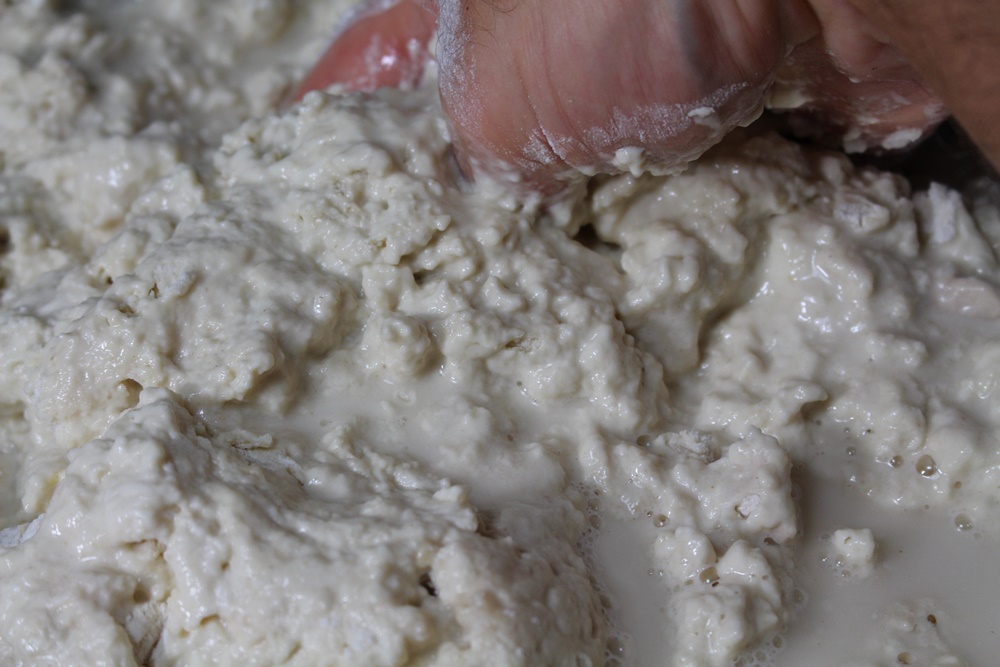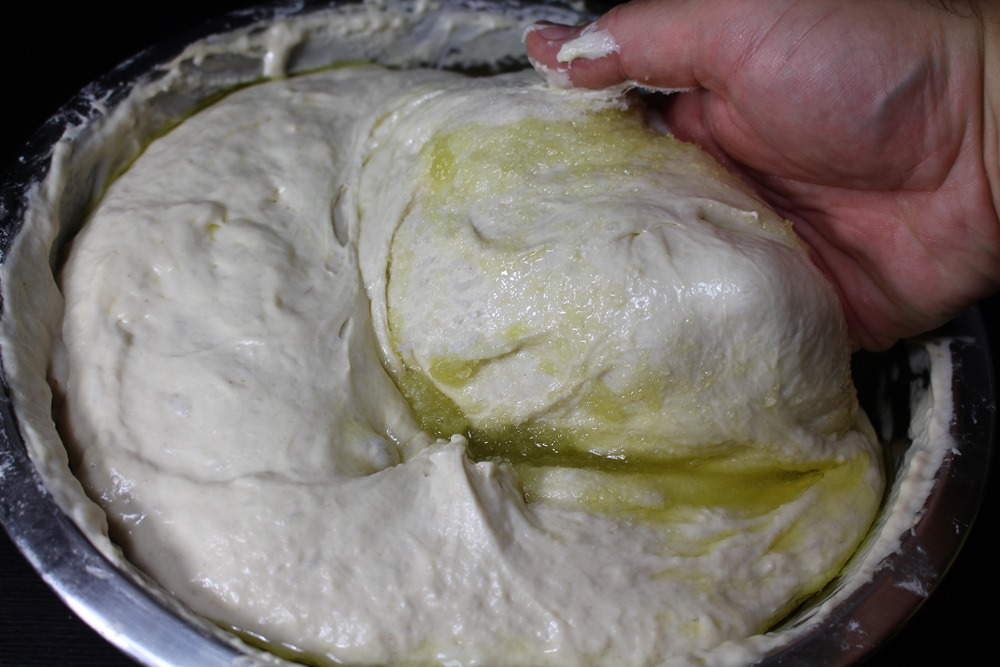 Néhány mozdulattal összekeverem, az egynemű, sima állagot a hajtogatás, és a kelesztés alatt éri majd el a tészta.