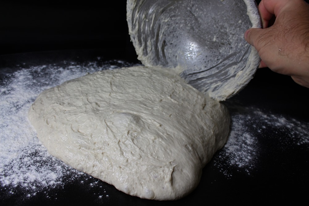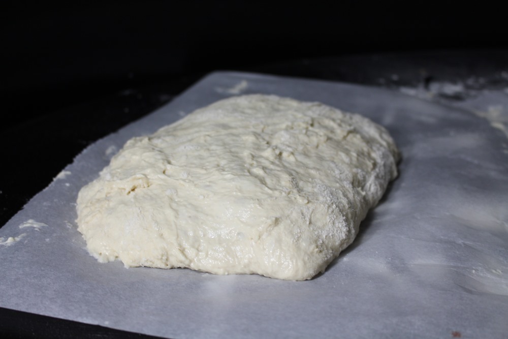 Szilikonos sütőpapírra helyezem a ciabattámat.