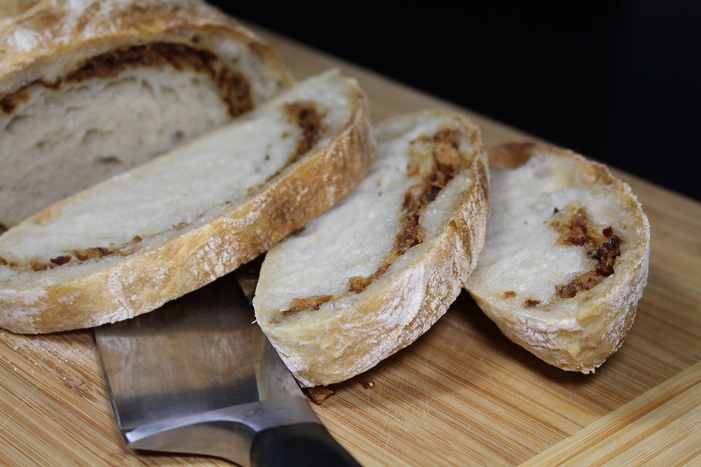 Klasszikus, mindenki által jól ismert, olasz kenyérféleség a ciabatta, szó szerinti jelentése papucs. Állítólag a francia baguette versenytársának szánták az olaszok. Az egyik legmagasabb víztartalommal készülő kenyérféle, igen lágy, szinte folyékony tésztával dolgozunk a készítésekor, ennek köszönhető a jellegzetes, nagy buborékok képződése a bélzetében kelesztéskor és sütéskor. Rengeteg változata létezik, most a sült hagymás változatát láthatjátok.