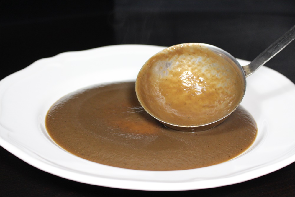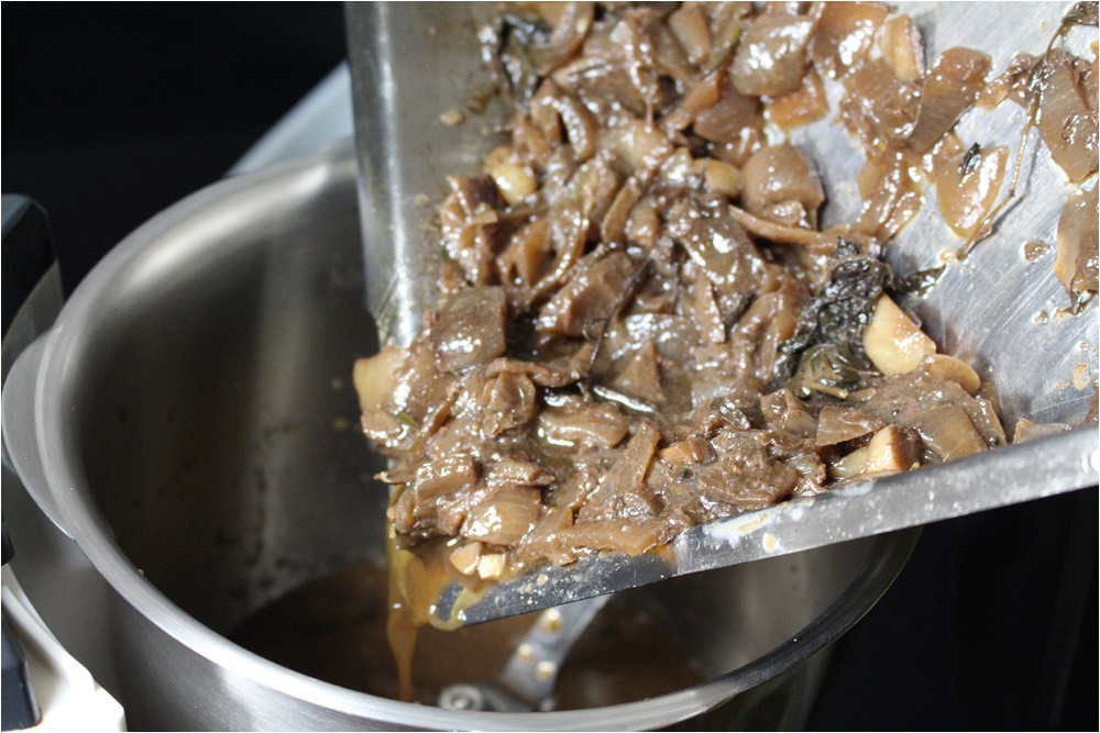 Thermomixbe öntöm a tepsi tartalmát, felforralom és 120 másodperc alatt egyneműsítem.
