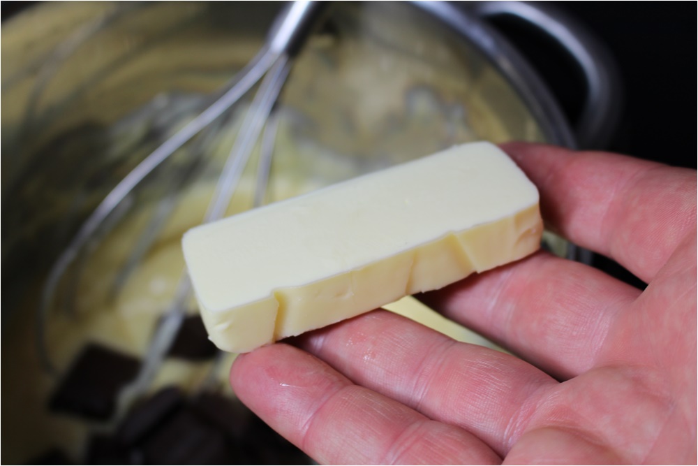 Még forrón, de a tűzről levéve, elkeverem benne a csokoládét.