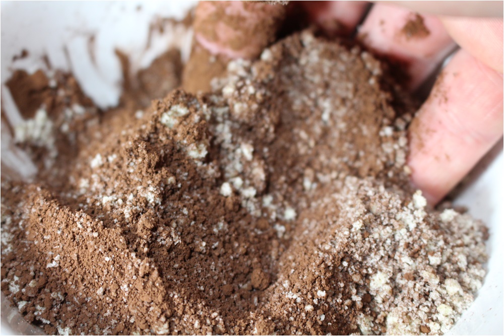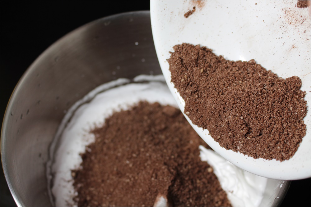 Óvatosan beleforgatom a kakaóporral elkevert mandulalisztet.