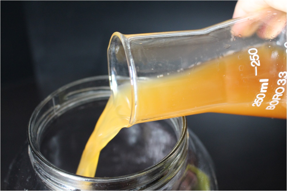 Hozzáöntöm a szűretlen, hőkezeletlen almaecetet.