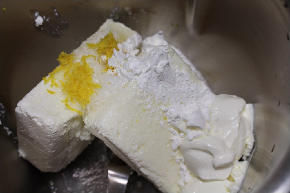 A túrótöltelék alapanyagait egy keverőtálba teszem és alaposan összedolgozom.