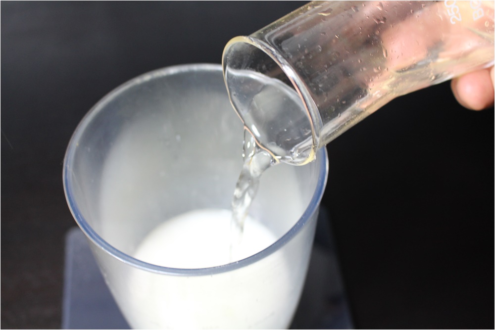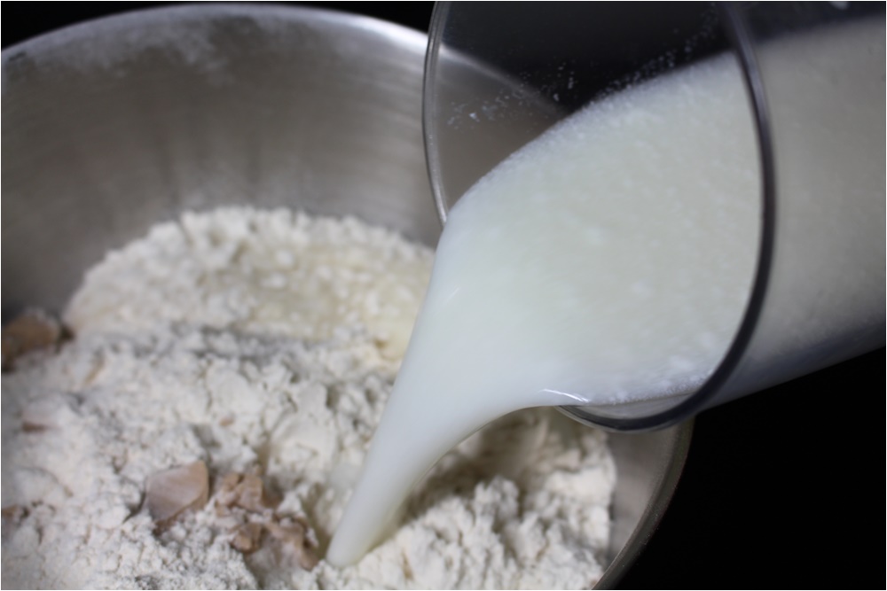 Elkészítem a kelt tésztát. A langyos vizet és a házi joghurtot összekeverem.