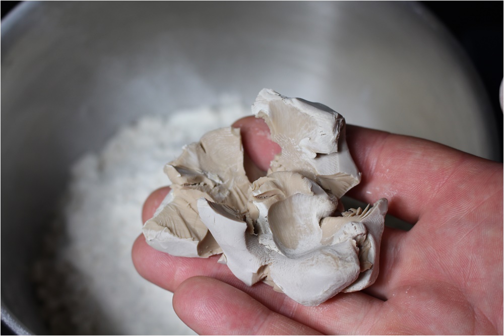 A lisztet a dagasztóedénybe mérem és belemorzsolom az élesztőt.