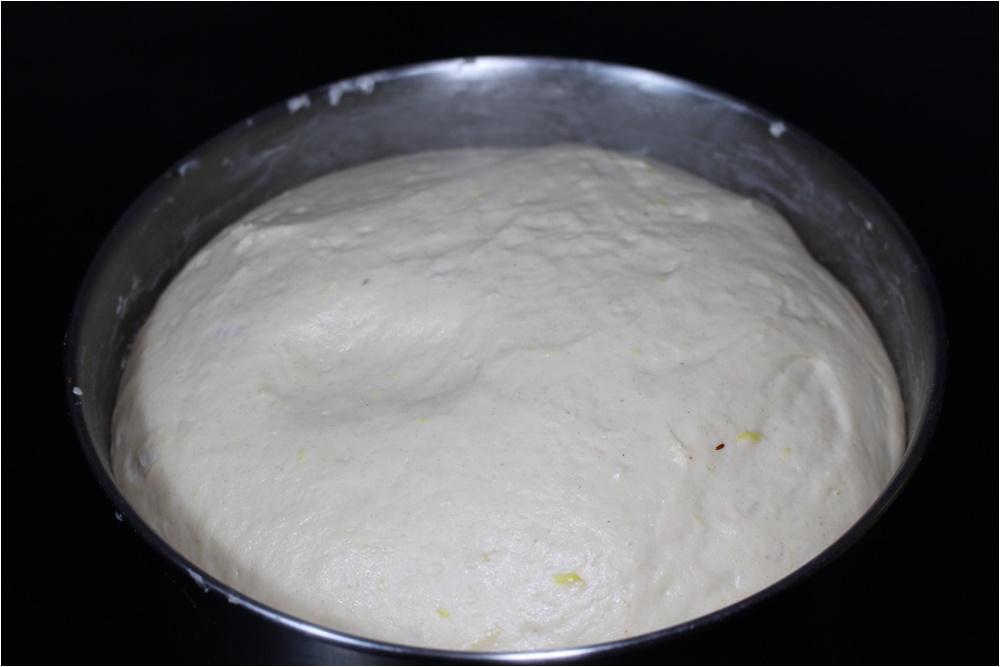 Langyos helyen, nedves konyharuhával letakarva duplájára kelesztem.