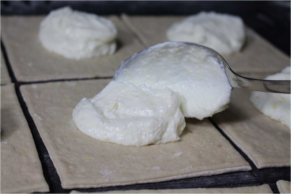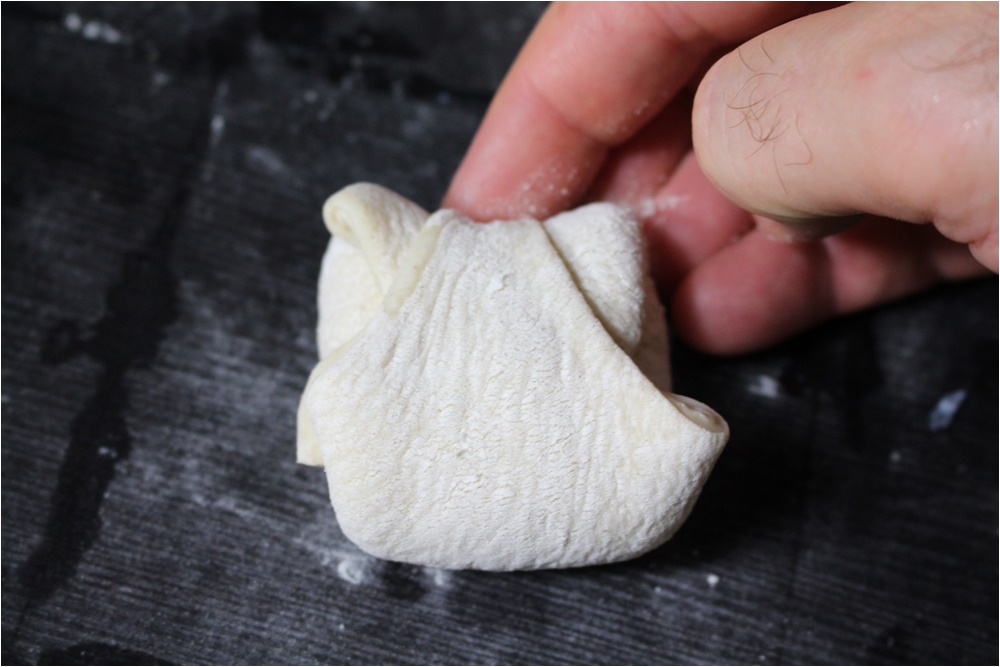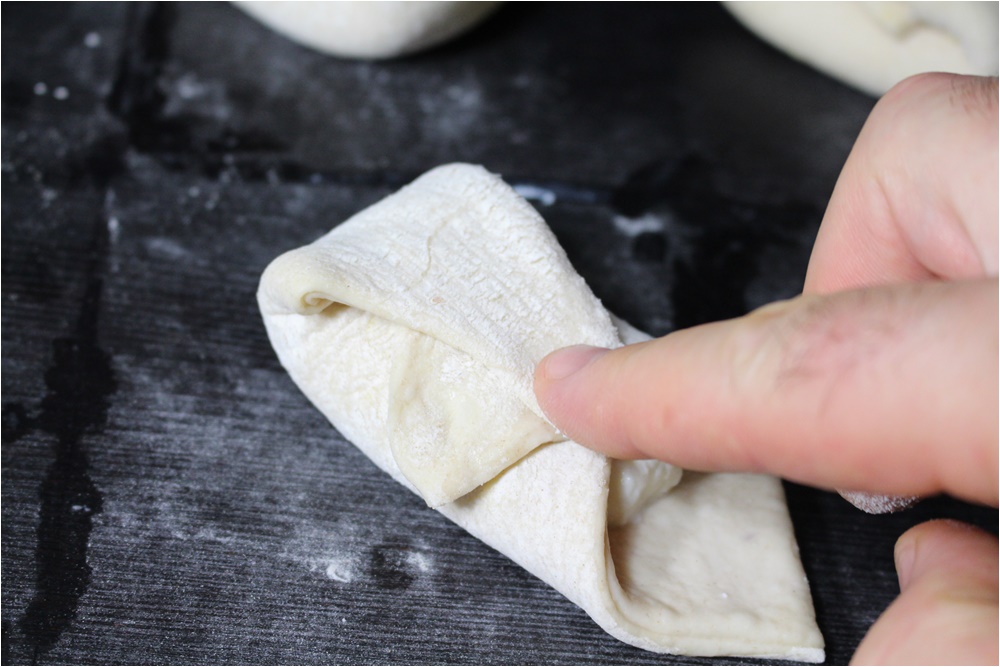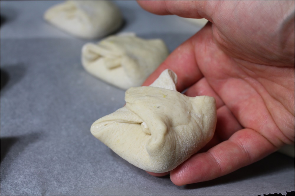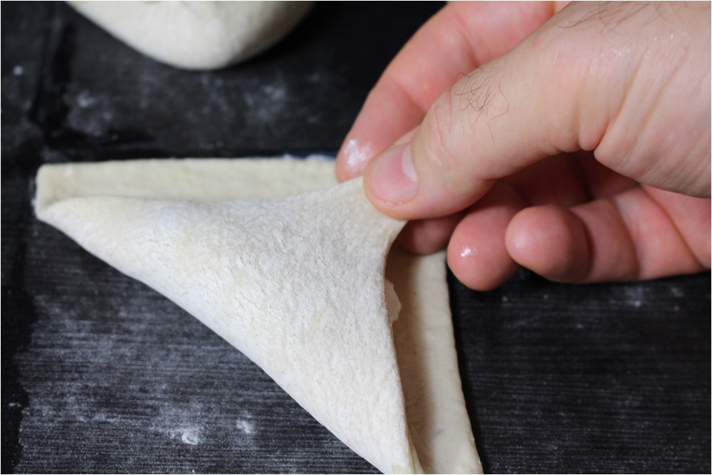 Szorosan a túrótöltelékre hajtom az első csücsköt.