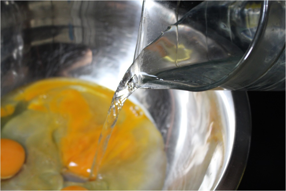Bekeverem az Orly masszát. A tojásokat elkeverem a vízzel.