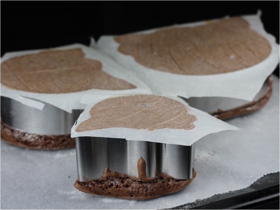 Elkészítem a csokoládés piskótát. A tojássárgájákat kihabosítom a cukor 1/3-ával. A tojások fehérjét felverem a cukor maradék 2/3-ával, majd összeforgatom a két tojásos részt. A lisztet összeforgatom a kakaóporral, óvatosan beleforgatom a felvert tojásokból álló részbe. Óvatosan keverem egynemű masszává.